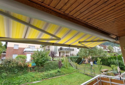 Unser Kunde entschied sich für eine stilvolle Balkonverkleidung aus Aluminium im Holzdekor, kombiniert mit modernen Blechen und Stäben, die dem Balkon eine luftige, zeitgemäße Ausstrahlung verleihen. Eine zusätzlich montierte Markise sorgt für perfekten Sonnenschutz und erhöht den Komfort.