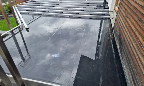 Um die Selbstreinigung auf Flächen zu aktivieren, Dichtbahn oder Bodenbeläge, erstellen wir ein Gefälle von 1,5% / 2% um Staunässe und Schmutzanhaftung zu verhindern. Auf Wunsch auch die kostengünstige Alternative ohne Gefälle. Du erhältst eine wesentlich länge Balkonabdichtung wie bei einem Flachdachaufbau am Balkon.