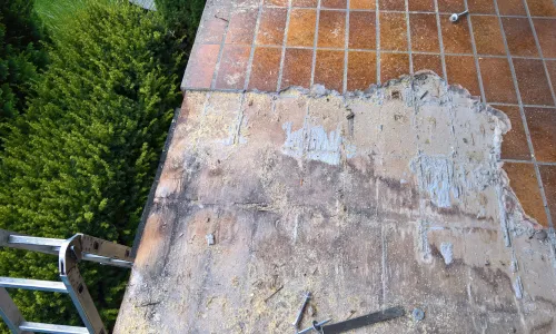 Ausgleichsschicht erstellen ins Gefälle, eventuell abbruchstellen an der Wand anputzen.